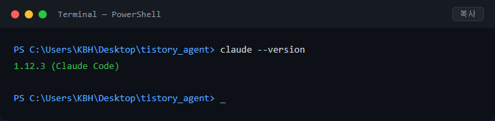 3. claude --version을 입력하여 버전 정보가 출력되는지 확인합니다.